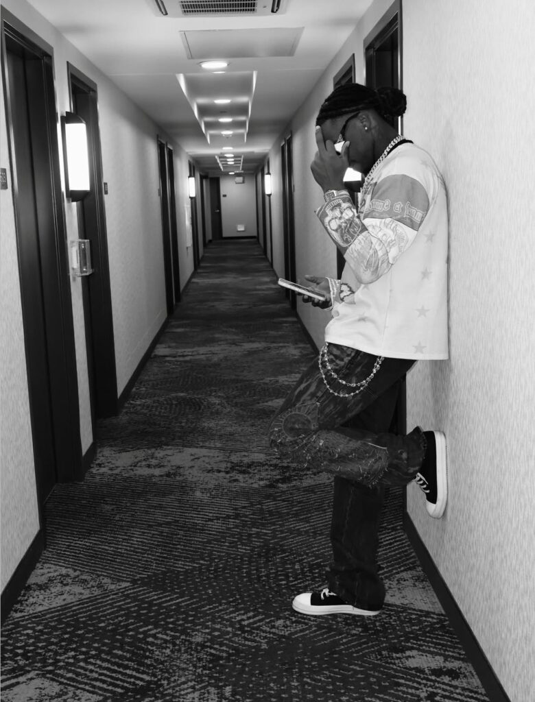 Carson kept things effortlessly sharp in a Homme Femme Peyote Thermal, paired with Who Decides War Mechanic straight-leg jeans for a rugged, street-ready finish. He completed the fit with Rick Owens DRKSHDW Low sneakers, adding a dark, directional edge to the overall look.