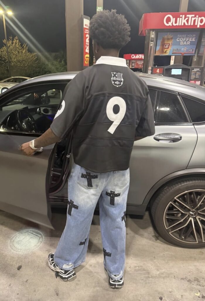 South Carolina Gamecocks wide receiver Donovan Murph keeps things effortless with a clean, street-ready look rooted in modern luxury. Murph was spotted wearing a Bottega Desires Futbol Jersey, paired with the brand’s Holy Grail Denim Pants, striking a balance between athletic influence and elevated streetwear. He finished the fit with Balenciaga Track Runner sneakers, grounding the look with a futuristic edge.