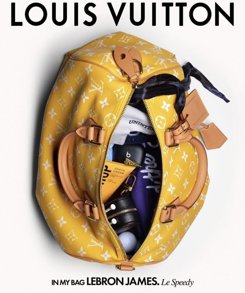 Each figure brings their own narrative to the silhouette. Jeremy Allen White leans into his understated, alternative aesthetic, filling his green Speedy P9 with everyday staples like a newspaper, spiral notebook, cap, comb, watch, and charging cord. LeBron James, meanwhile, uses his yellow iteration to house a mix of grooming essentials and downtime favorites, including shaving cream and his signature cap.