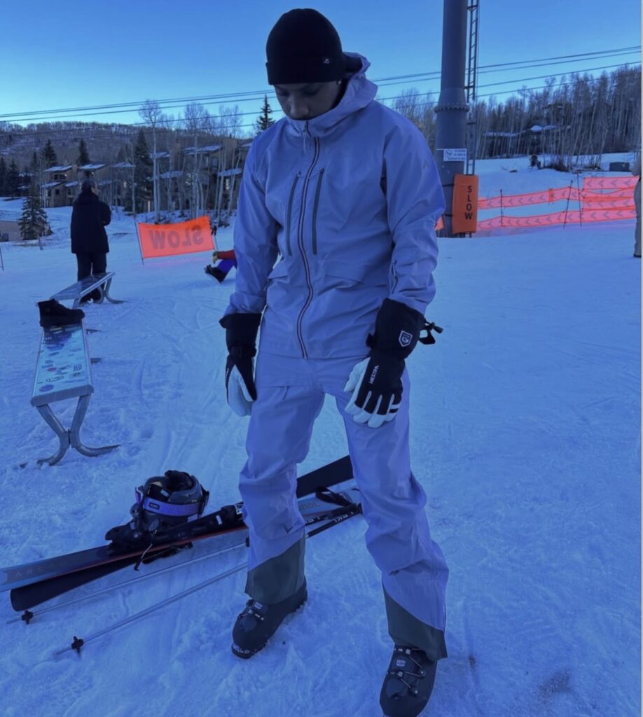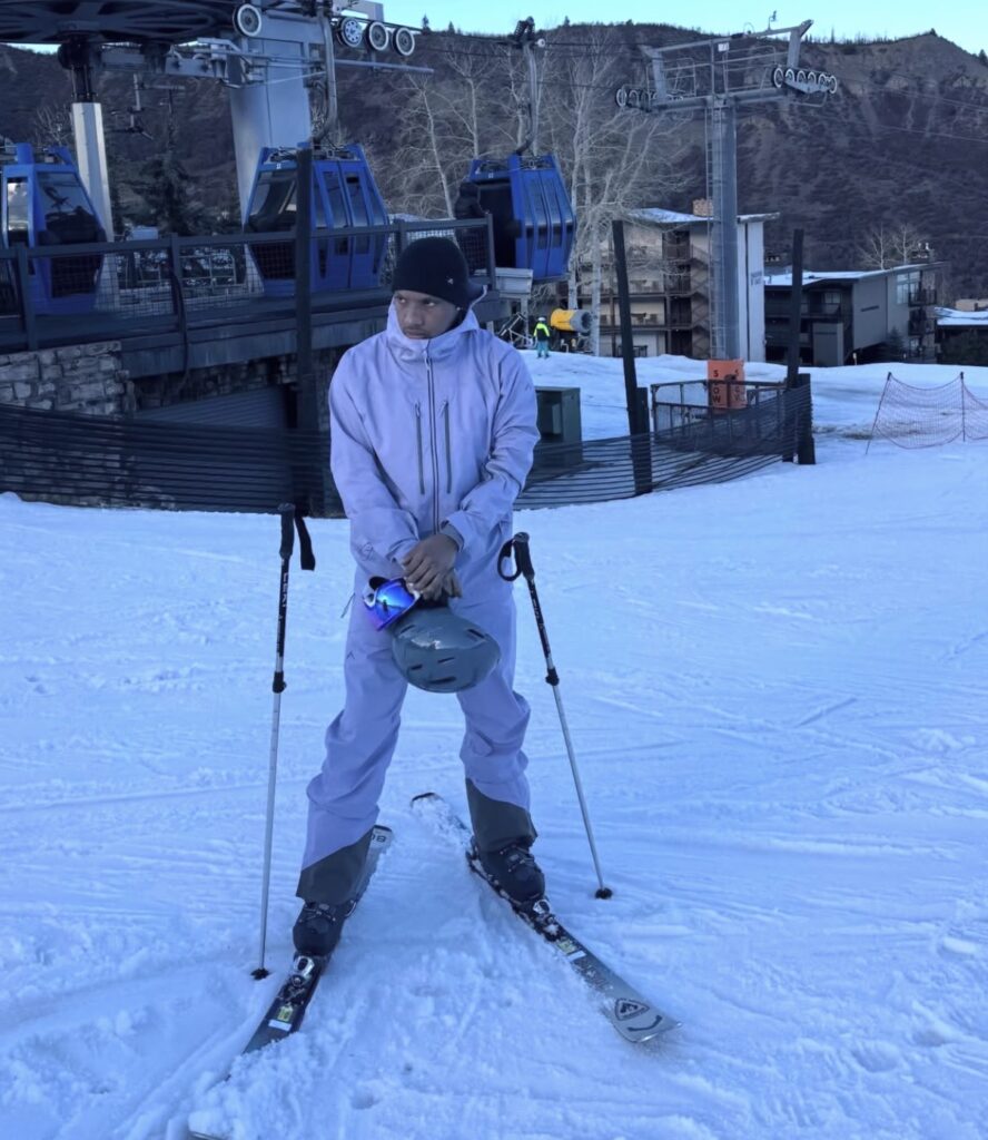 Throughout his trip, the New Orleans native was photographed carving through Aspen’s iconic terrain in a Spyder Vanquish insulated ski jacket, paired with Hestra ski gloves—a trusted staple among serious skiers. The look balanced technical function with sleek design, ideal for long days navigating Aspen’s high-altitude runs.