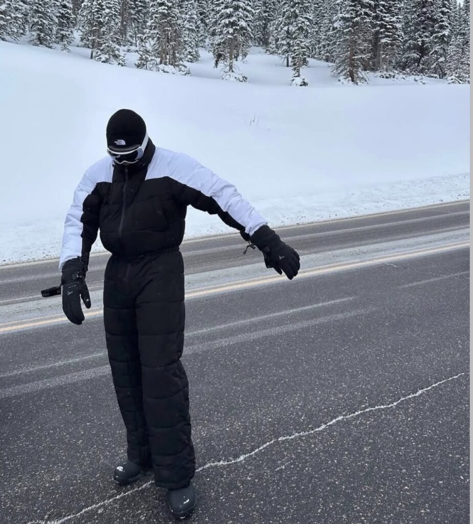 Closing out his ski wardrobe rotation, Rob49 went bold in an ASOS 4505 insulated, water-repellent ski suit in black and white. The streamlined one-piece delivered a clean, modern silhouette while keeping warmth and mobility top of mind—proof that ski style doesn’t have to sacrifice function.