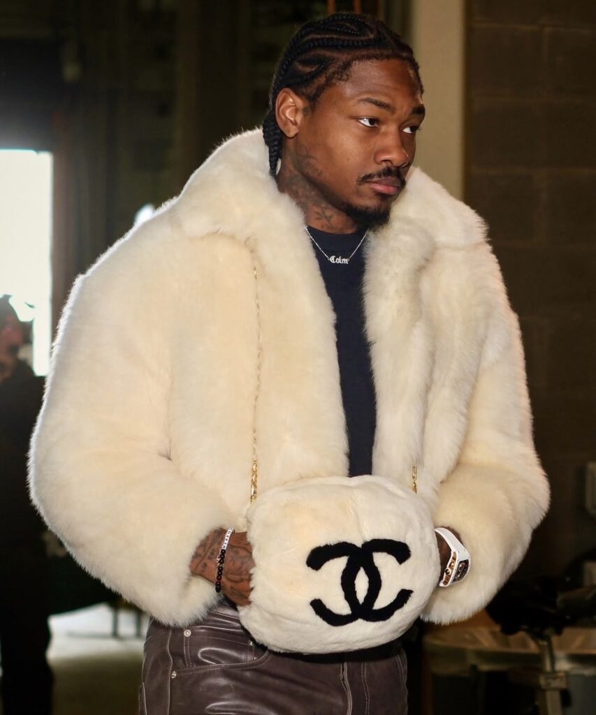 Stefon Diggs Brings Luxe Energy to MetLife in Vintage Chanel And White Fur